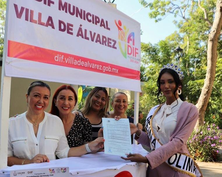Durante el anuncio de los módulos móviles para realizar de manera gratuita la expedición de actas de nacimiento, matrimonio y defunción, entre otros trámites del Registro Civil, la Alcaldesa de Villa de Álvarez, Tey Gutiérrez Andrade, entregó la primera acta de reconocimiento de identidad género.