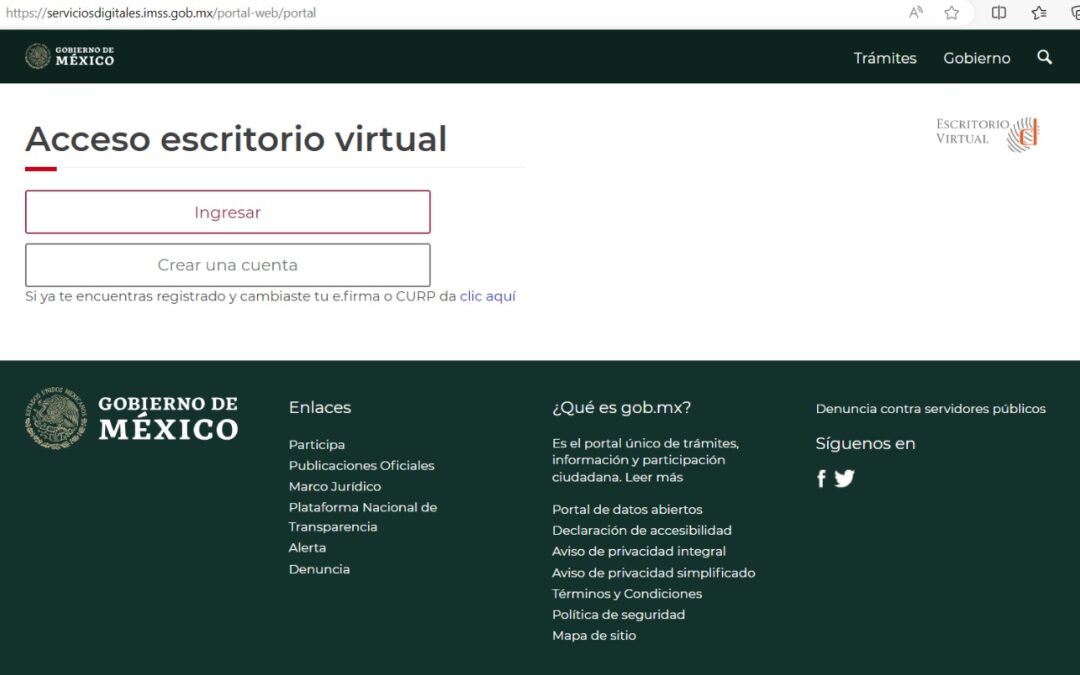 1. Ingresar a la dirección https://serviciosdigitales.imss.gob.mx/portal-web/portal