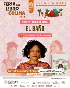 Ese mismo día a las 11:00 de la mañana, desde el estado invitado de Durango, llegará la agrupación ‘Pentresí: teatro desde adentro’ para presentar ‘Nana Prrr’ en el Teatro Hidalgo, puesta en escena para niñas y niños. Y la escritora mexicana Natalia Toledo presentará su libro infantil ‘El baño’, el jueves 9 a las 9:00 de la mañana en el patio central del Museo Palacio de Gobierno de Colima.