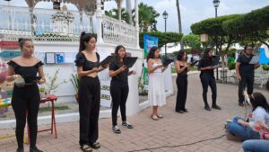 ¿Qué es una lectura coral? Es la lectura de un cuento a varias voces a manera de canon «como en la música», hasta que todos/as estemos leyendo a coro, un mismo cuento. Por fortuna tuvimos mucho público en medio de esta organización de la Feria del Libro de Comala 2023 y, por fortuna, el público recibió el documento de buena manera, recibimos muchas felicitaciones por este ejercicio, muchos videos de la lectura y, bueno, fue, puedo decirlo así, una actividad muy valiosa tanto para el público como para mis alumnas que estudiamos la materia llamada así: Fomento y difusión de la lectura.