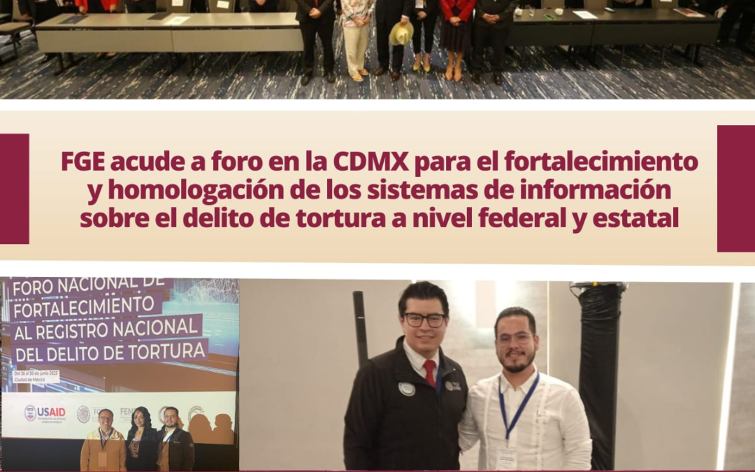 En el marco del Día Internacional de Apoyo a las Víctimas de Tortura, el Fiscal Especializado en la Investigación de Delitos de Tortura y Otros Tratos o Penas Crueles, Inhumanos o Degradantes, Carlos Fernando Aguilar Hernández, perteneciente a la Fiscalía General del Estado de Colima (FGE), así como elementos adscritos a esta institución, asistieron al “Foro Nacional de Fortalecimiento al Registro Nacional del Delito de Tortura”, mismo que se llevó a cabo en la Ciudad de México.