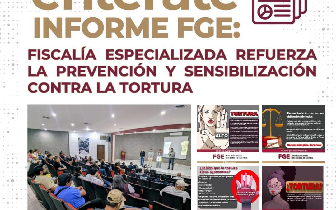 La Fiscalía General del Estado de Colima (FGE), a través de la Fiscalía Especializada en la Investigación de Delitos de Tortura y Otros Tratos o Penas Crueles, Inhumanos o Degradantes, informa que, del 1 de noviembre de 2024 al 31 de octubre de 2025, mantuvo una participación activa en campañas, jornadas y acciones de sensibilización orientadas a la prevención del delito, la promoción de la cultura de la denuncia y la difusión de los derechos humanos.