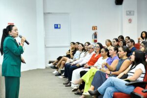 La conferencia, realizada en el auditorio de la Facultad de Ciencias de la Educación, estuvo a cargo de la nutrióloga Laura Guerrero Bárcena, responsable del lactario del Hospital Materno Infantil, quien expuso los beneficios, mitos y desafíos de la lactancia.