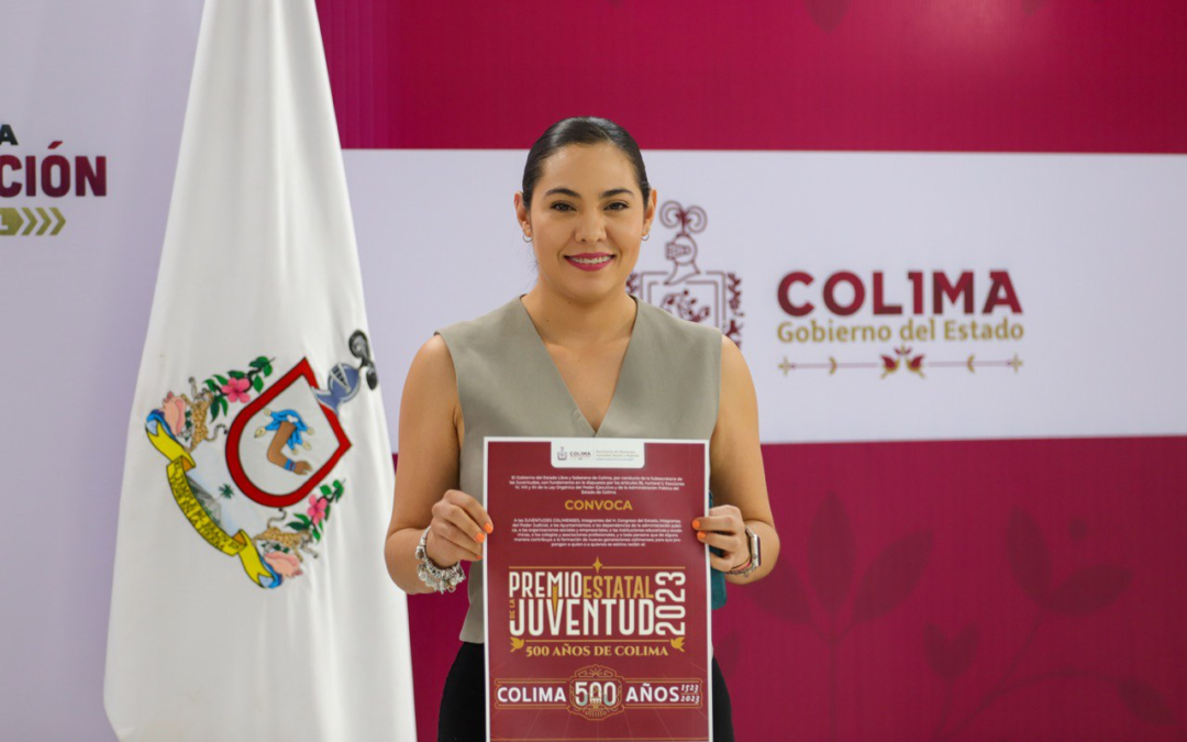 La gobernadora de Colima, Indira Vizcaíno Silva, y el subsecretario de las Juventudes, Gerardo Romero Quezada, presentaron la convocatoria del Premio Estatal de la Juventud 2023; que se entregará en agosto próximo, donde las y los ganadores recibirán un reconocimiento, una estatuilla alusiva al premio y diez mil pesos. La mandataria señaló que se premiara a jóvenes -mujeres y hombres-, que destacan por su talento y esfuerzo en áreas académicas, emprendimientos empresariales o sociales, actividades artísticas, cuidado medioambiental, salud, deporte y promoción de la igualdad y la diversidad.