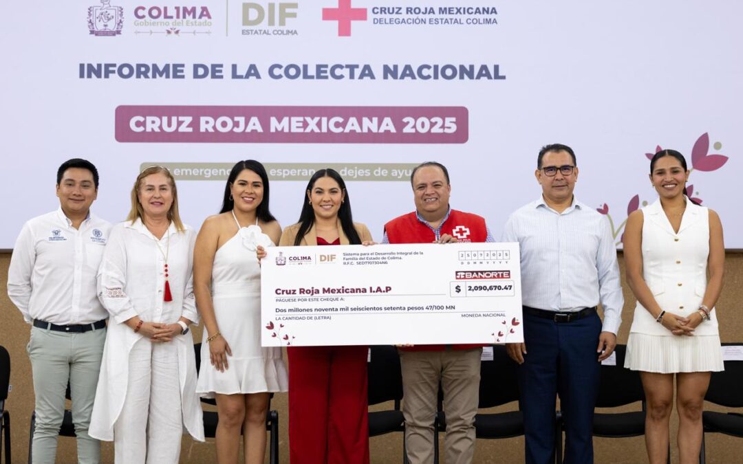 Este viernes, la gobernadora de Colima, Indira Vizcaíno Silva, entregó los 2 millones 90 mil 670 pesos que se lograron reunir con la Colecta Anual de la Cruz Roja Mexicana 2025, en evento realizado en el auditorio del Poder Judicial del Estado, en el municipio capitalino; ahí, la mandataria estatal destacó que este recurso permite el fortalecimiento de una institución que está siempre al pendiente de las y los colimenses.
