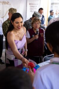 Rocío Bárcena recordó que la campaña ‘Sí al Desarme, Sí a la Paz’ invita a las personas que tengan un arma a canjearla por dinero en efectivo, en los módulos que están instalados en el lugar por parte de la Secretaría de la Defensa Nacional; «es importante que en los hogares no existan esos artefactos que no son buenos para nadie (…) porque esa es una manera que la familia que tenga un arma en la casa les demuestre a niñas y niños que ellos no están de acuerdo con la violencia». También hay un módulo para que las y los menores de edad puedan intercambiar juguetes bélicos por lúdicos.