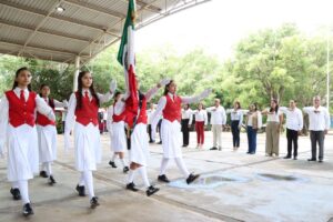Con gran entusiasmo y el compromiso de seguir construyendo un mejor futuro para nuestra entidad, el Gobierno del Estado de Colima puso en marcha este lunes el ciclo escolar 2025-2026, en la escuela secundaria No. 5 ‘José Mora y Verduzco’, en el municipio de Cuauhtémoc, ceremonia encabezada por el secretario de Educación y Cultura del Gobierno, Adolfo Núñez González, en representación de la gobernadora Indira Vizcaíno Silva, acompañado por la subsecretaria de Educación, Katia Paola Vázquez Solórzano.
