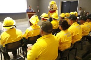 Las autoridades reconocieron a cada una de las brigadas que participaron en el combate de incendios forestales durante la pasada temporada de estiaje; además, celebraron a las y los combatientes con más años de servicio y a instituciones como la Secretaría de la Defensa Nacional (Sedena) y las dependencias municipales de Protección Civil.