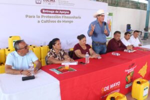 En el marco de las acciones de control fitosanitario, productores de mango de las comunidades de Venustiano Carranza y La Central, en el municipio de Manzanillo, recibieron un subsidio para la adquisición del líquido que les permitirá combatir a dicha plaga.