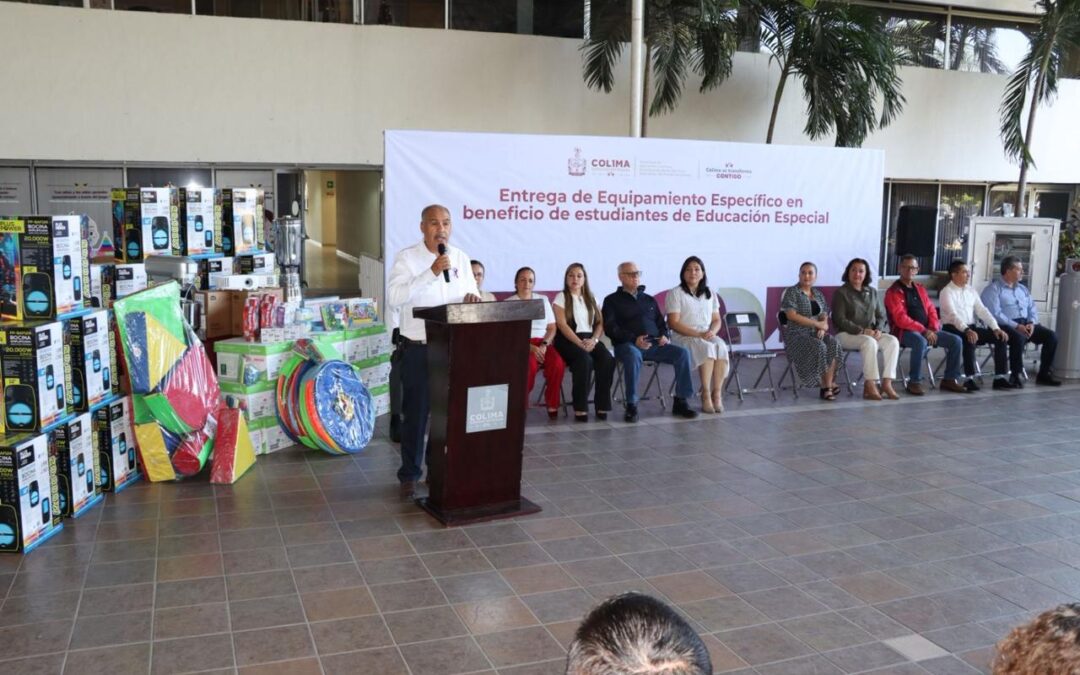 En representación de la gobernadora Indira Vizcaíno Silva, el secretario de Educación y Cultura del Gobierno del Estado de Colima, Adolfo Núñez González, inició este miércoles la entrega de materiales didácticos y equipamiento del Programa de Fortalecimiento de los Servicios de Educación Especial, que impacta directamente en la atención a niñas, niños y adolescentes con discapacidad y aptitudes sobresalientes en la entidad.