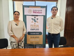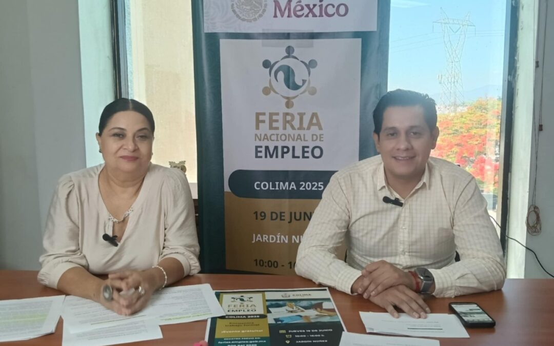 La subsecretaria del Trabajo del Gobierno del Estado de Colima y titular del Servicio Nacional de Empleo (SNE), Delia Ludivina Olmos Díaz, acompañada por el director de Empleo, Heriberto Contreras González, reiteró la invitación a la Feria Nacional de Empleo 2025, que se llevará a cabo el jueves 19 de junio, de 10:00 de la mañana a 4:00 de la tarde en el jardín Núñez de la ciudad de Colima.
