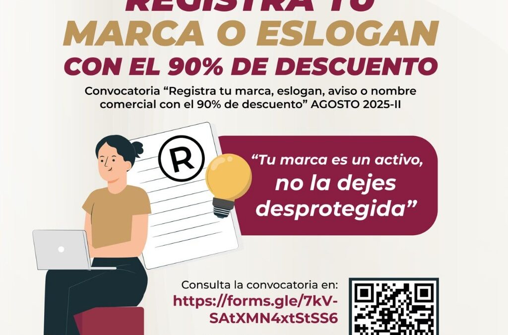 El Gobierno del Estado de Colima, a través de la Secretaría de Desarrollo Económico (Sedeco), en coordinación con el Instituto Mexicano de la Propiedad Industrial (IMPI), convocan a ‘Registra tu marca, eslogan, aviso o nombre comercial con el 90% de descuento Agosto 2025-II’, dirigida a personas emprendedoras, artesanas, empresarias y empresarios colimenses que deseen proteger legalmente su marca.