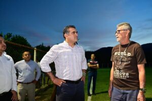 Asimismo, el alcalde visitó las instalaciones deportivas, donde dialogó con promotores deportivos y se comprometió a realizar mejoras en el alumbrado, así como a gestionar la construcción de un techo en las canchas de usos múltiples.
