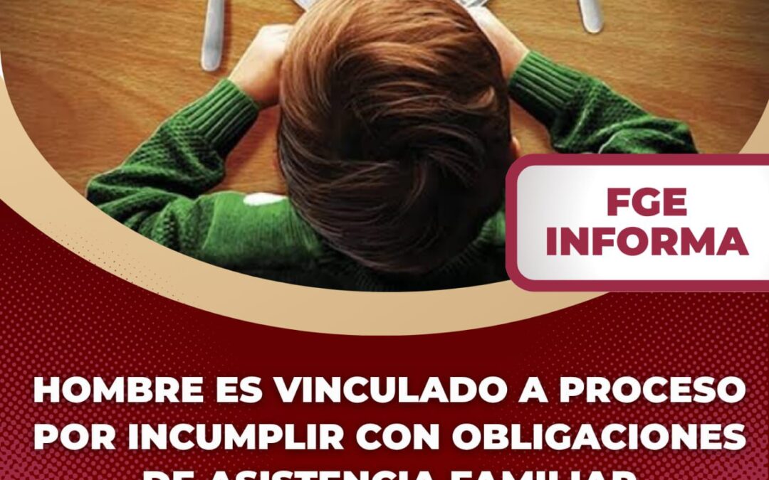 La Fiscalía General del Estado (FGE) informa que fue vinculado a proceso José Adrián “N” por su probable responsabilidad en el delito de incumplimiento de las obligaciones de asistencia familiar, en agravio de sus tres hijos menores de edad.