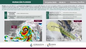La Unidad Estatal de Protección Civil (UEPC) del Gobierno del Estado de Colima informa que, de acuerdo con el último reporte del Servicio Meteorológico Nacional (SMN), el huracán #Flossie ha evolucionado a categoría 2 en la escala Saffir-Simpson, mientras se desplaza a 17 kilómetros por hora con dirección al noroeste frente a las costas de Colima, Michoacán y Jalisco.