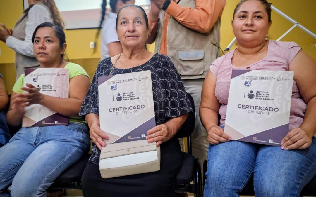 Como parte del compromiso por garantizar el acceso a la educación básica tanto a personas jóvenes como adultas mayores, el Instituto Estatal de Educación para Adultos (IEEA) del Gobierno del Estado de Colima, entregó durante el mes de julio 456 certificados de estudios básicos: 139 de primaria y 317 de secundaria.