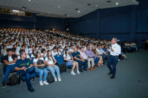 Como parte de las actividades para celebrar el 60 aniversario del Bachillerato 2 de la Universidad de Colima (UdeC), el rector Christian Jorge Torres Ortiz Zermeño impartió la conferencia “Consejos personales para el buen desarrollo como estudiante de la Universidad de Colima”, ante cientos de estudiantes reunidos esta tarde en el Paraninfo Universitario.
