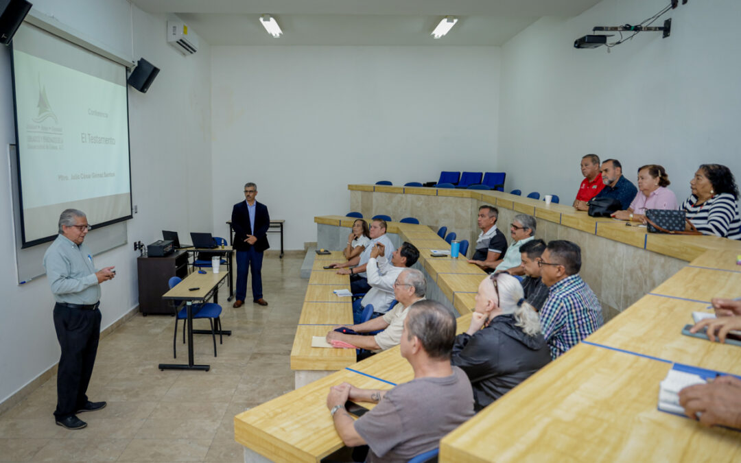 Con el objetivo de sensibilizar a sus agremiados sobre la importancia de prever el futuro patrimonial y evitar conflictos familiares, la Asociación de Jubilados y Pensionados de la Universidad de Colima organizó la charla titulada “El Testamento”, impartida por Julio César Gómez Santos, docente de la Facultad de Derecho, este miércoles en el Archivo Histórico y Hemeroteca de esta casa de estudios.