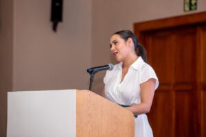 La mandataria colimense agradeció la invitación a este evento importante para el desarrollo del Puerto de Manzanillo y destacó que, en esta jornada, las y los participantes presenciarán paneles en los que se darán diálogos sobre los temas más relevantes, vigentes y definitorios para el presente y el futuro de las empresas portuarias y para todo el sector logístico y comercial.