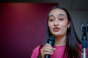 Como parte del acto inaugural, Ana María Calderón Aguirre, alumna de la Facultad de Arquitectura, les dijo a los y las aspirante, que elegir una carrera es una de las decisiones más importantes en la vida de un estudiante: “No es solamente decidir qué se va a estudiar durante algunos años, es comenzar a construir un proyecto de vida, una manera de contribuir a la sociedad. Es empezar a imaginar quién quiero ser, qué quiero aportar y desde dónde quiero hacerlo”.