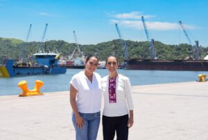 Durante su gira de trabajo, la presidenta Claudia Sheinbaum realizó un recorrido por el Puerto de Manzanillo para supervisar los trabajos de ampliación de este importante recinto portuario, y más tarde encabeza el banderazo de inicio de obra de los puentes vehiculares en el estado de Colima.