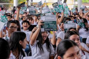 El titular de la SEP destacó que la Presidenta de México quiere que la pasen bien, que aprendan mucho y que nadie se quede fuera de la escuela, y les pidió que si conocen a alguien que no se haya inscrito a la preparatoria, le inviten a que lo hagan para que también reciban su beca y no dejen de estudiar.