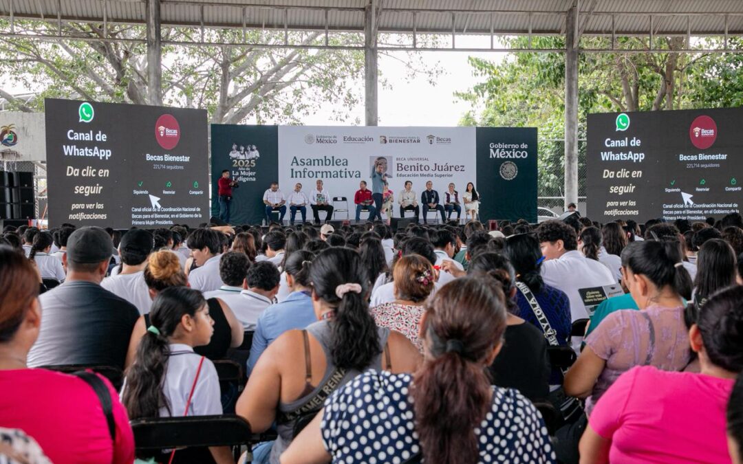 La gobernadora de Colima, Indira Vizcaíno Silva, encabezó este lunes las asambleas informativas sobre la beca universal ‘Benito Juárez’ para estudiantes de educación media superior, realizadas por la Secretaría de Educación Pública (SEP) y la Coordinación de Becas Bienestar del Gobierno de México, en los municipios de Tecomán y Manzanillo.