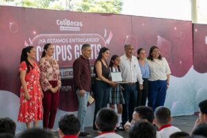 Mencionó que, aunado a este apoyo, a través del Programa #ColiBecas se entregan mochilas, útiles y una beca en efectivo -Mi ColiBeca para Empezar- en preescolar y primaria, así como uniformes desde kínder hasta secundaria; y que, por parte del Gobierno de México que encabeza la presidenta Claudia Sheinbaum Pardo, en secundaria se les entrega la beca ‘Rita Cetina’ y la ‘Benito Juárez’ en preparatoria.