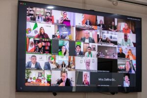 La gobernadora de Colima, Indira Vizcaíno Silva y el equipo de Salud en la entidad, participó la tarde de este miércoles en reunión virtual con la presidenta de México, Claudia Sheinbaum Pardo y las 32 gobernadoras y gobernadores, para unificar y fortalecer la Estrategia Nacional de Atención al Sarampión en el país; la Jefa de la Nación pidió mantener la calma, compartiendo que, según estudio del Instituto Nacional de Salud Pública, alrededor del 65% de la población mexicana está vacunada con las dos dosis.