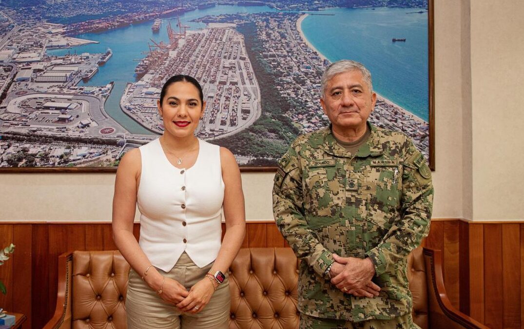 La tarde de este viernes, en las instalaciones de la Administración del Sistema Portuario Nacional (Asipona) de Manzanillo, la gobernadora del estado de Colima, Indira Vizcaíno Silva, se reunió con el Almirante Gerardo de Jesús Toledo Guzmán, subsecretario de Asuntos Marítimos y Portuarios, de la Secretaría de Marina del Gobierno de México.