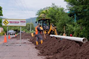 Además, se están colocando tres válvulas de admisión y expulsión de aire, retiro y reinstalación de 50 metros de lienzo con postes de concreto y alambre de púas, así como la limpieza general del área de trabajo.