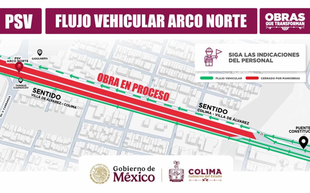 La Secretaría de Infraestructura, Desarrollo Urbano y Movilidad (Seidum) del Gobierno del Estado de Colima informa a la ciudadanía que, a partir de este lunes 12 de enero, se implementarán ajustes temporales en la circulación del Tercer Anillo Periférico, con motivo del avance de los trabajos para la construcción del Paso Superior Vehicular (PSV) Arco Norte.