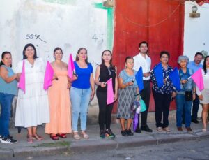 Al arranque de la obra de rehabilitación de pavimento con asfalto en la calle Josefa Ortiz de Domínguez, asistieron María Ramírez López Presidenta del Comité de Barrio de la Zona Centro Sur; Rocío Cárdenas, Presidenta del Comité de Participación Ciudadana; vecinos de la Zona Centro y funcionarios y funcionarias municipales.