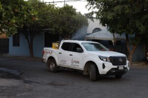 Personal de Vectores fumiga durante estos cuatro días con unidades pesadas en los municipios de Colima, Manzanillo, Tecomán y Villa de Álvarez, de manera focalizada en 27 fraccionamientos, colonia y comunidades donde se ha detectado mayor presencia del mosco Aedes aegypti.