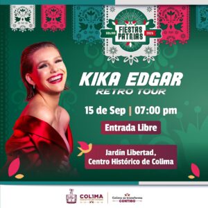 El Gobierno del Estado de Colima, que encabeza la mandataria Indira Vizcaíno Silva, invita a la población a asistir este lunes 15 de septiembre al centro histórico de la capital colimense para participar en la ceremonia del Grito de Independencia y disfrutar de la verbena que se celebrará en el jardín Libertad, donde habrá venta de antojitos y música en vivo, con la presentación estelar de la cantante Kika Edgar, en el escenario junto al Palacio de Gobierno.