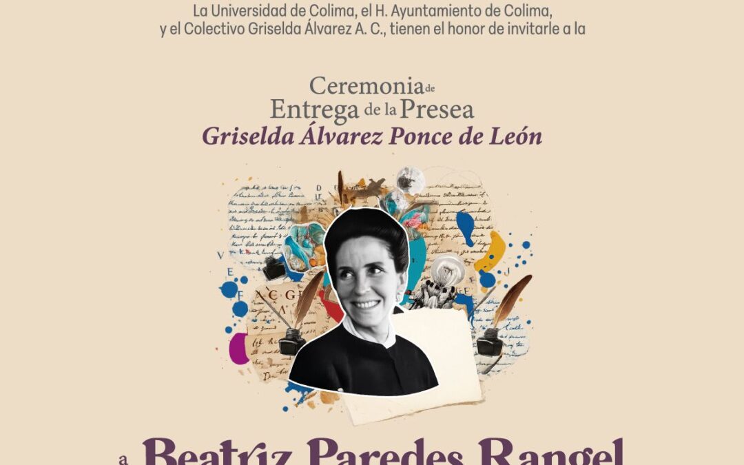 Colima, Colima a 20 de abril 2026.- La Universidad de Colima, el H. Ayuntamiento de Colima, y el Colectivo Griselda Álvarez A. C., invitan a la comunidad en general a la Ceremonia de Entrega de la Presea Griselda Álvarez Ponce de León a Beatriz Paredes Rangel, un evento de gran importancia para la cultura y el desarrollo social de nuestra región.