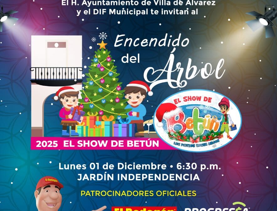 El Festival del Encendido del Árbol Navideño lo organizan el Ayuntamiento de Villa de Álvarez y el DIF Municipal, ofrecerá un espectáculo con personajes navideños, además se sortearán regalos entre el público asistente.