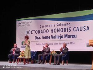Irene Vallejo a catalogado este día, 3 de diciembre de 2024 como un día inolvidable y si para ella así lo fue, para quienes estuvimos de público en los dos eventos que organizó la Universidad de Colima «mí, nuestra alma máter», también lo fue. Resulta que la Universidad de Colima le entregó, merecidamente, el doctorado Honoris Causa a esta distinguida autora española, para muchos, ya convertida en todo un clásico que, seguramente, lo seguirá siendo durante mucho tiempo más.