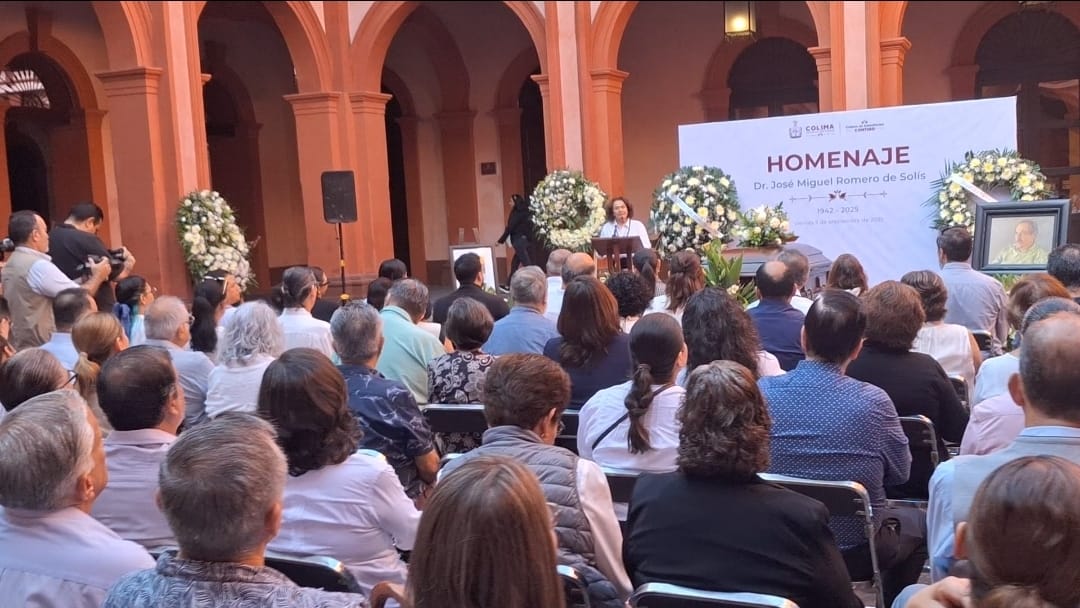 La mañana de este viernes, la gobernadora Indira Vizcaíno Silva encabezó las honras fúnebres de cuerpo presente que se le realizaron al historiador José Miguel Romero de Solís, en el patio central del Museo Palacio de Gobierno del Estado de Colima, en presencia de su familia, seres queridos, entre otras autoridades de esta entidad.
