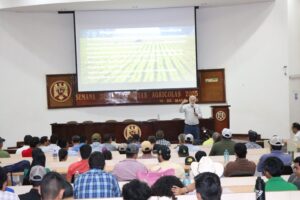 Ante estudiantes, docentes, personal académico e incluso empresarios y agricultores, el reconocido especialista -poseedor de un récord Guinness por rendimiento en cultivo de maíz y considerado uno de los seis profesionales más influyentes en productividad agrícola a nivel mundial- compartió su visión sobre los desafíos actuales y futuros que enfrenta la agricultura, entre ellos la necesidad de producir más alimentos con menos recursos, el impacto del cambio climático, la pérdida de fertilidad de los suelos y la creciente demanda de calidad en los productos agrícolas.