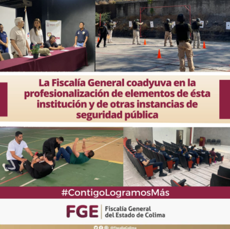 Así mismo, durante los meses de abril y mayo de este año se han llevado a cabo 20 cursos con diversos tópicos teniendo más de 180 personas capacitadas; desde ésta dirección se ha trabajado de manera conjunta con otras instituciones para diseñar e implementar cursos de capacitación, coadyuvando a la profesionalización de instancias tanto municipales como estatales ligadas a la seguridad pública y procuración de justicia, la Dirección de Seguridad Pública y Vialidad de Comala y la Dirección de Seguridad Pública de Tecomán, así como la Procuraduría de Protección de Niñas, Niños y Adolescentes (PRONNA).