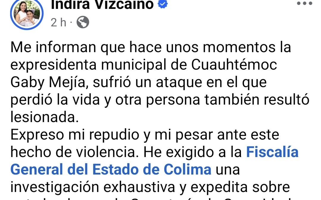 Expreso mi repudio y mi pesar ante este hecho de violencia. He exigido a la Fiscalía General del Estado de Colima una investigación exhaustiva y expedita sobre este hecho; y a la Secretaría de Seguridad Pública le he instruido que colabore con todas las herramientas a su alcance en dicha investigación.