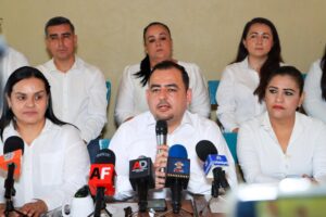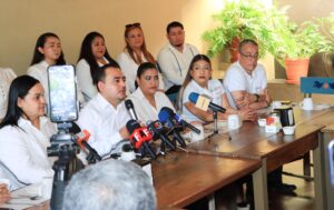 Durante la rueda de prensa, presentó a las personas encargadas de atender en los 10 municipios de Colima, quienes brindarán orientación y apoyo en trámites relacionados con las becas.