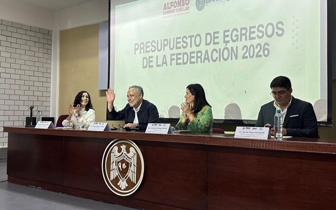 En el marco del 46 aniversario de la Facultad de Economía de la Universidad de Colima, la Asociación de Egresados de Economía, que preside David Villarreal Adalid, organizó la conferencia: “Presupuesto público 2026”, impartida por el diputado federal por Morena, Alfonso Ramírez Cuéllar.