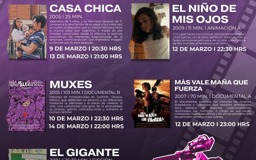 La programación inició este lunes con el cortometraje ‘Casa chica’ (2005), que narra desde la mirada infantil las complejidades de una familia marcada por el paso del tiempo. El ciclo continúa este 10 de marzo con el documental ‘Muxes’ (2005), que retrata la vida de la comunidad muxe en Juchitán Oaxaca, y su defensa del derecho a la identidad y la diversidad.