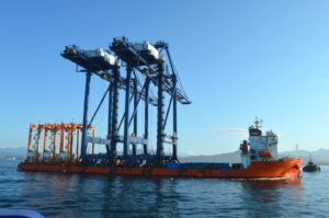 La mañana de este lunes 13 de octubre, abordo del buque Zhen Hua 37, arribaron al puerto cinco nuevas grúas para las terminales portuarias SSA Marine y Contecon.