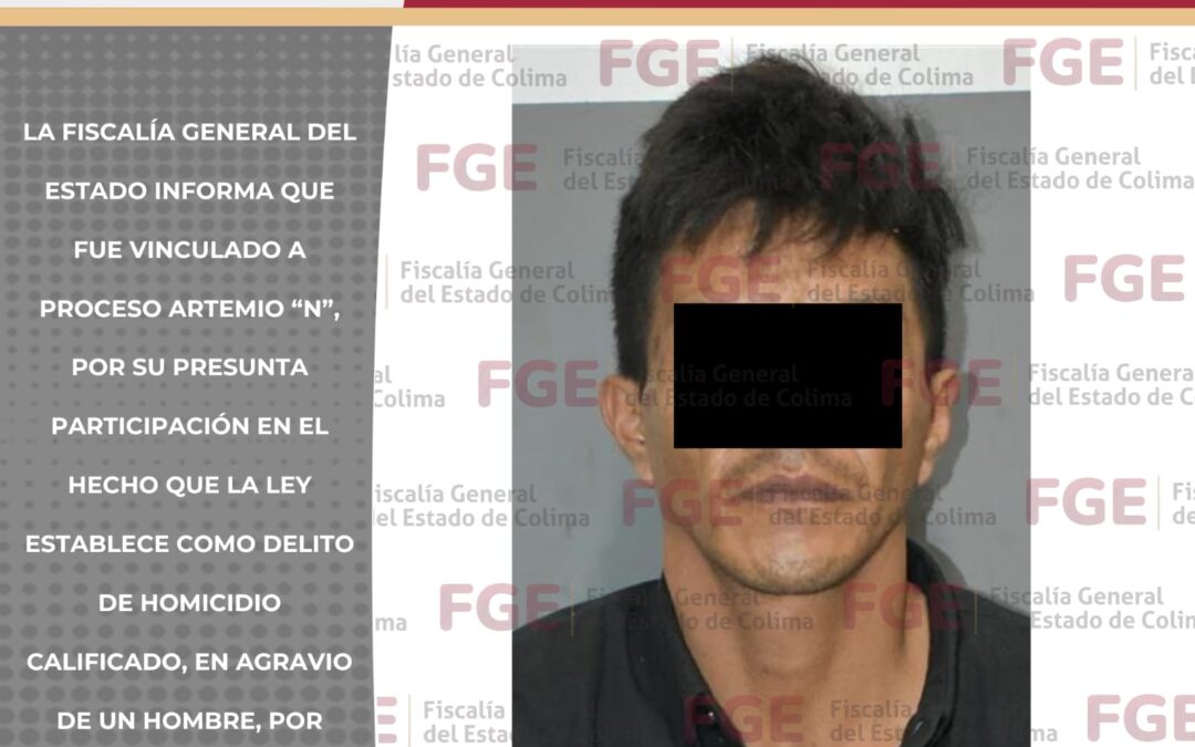 La Fiscalía General del Estado informa que fue vinculado a proceso Artemio “N”, por su presunta participación en el hecho que la ley establece como delito de homicidio calificado, en agravio de un hombre, por hechos ocurridos en el municipio de Villa de Álvarez.