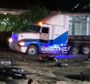 Autoridades de seguridad y vialidad municipal, mantiene el monitoreo de la zona, y ya se trabaja para retirar al vehículo de carga pesada y poder restablecer el paso.
