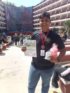 El estudiante de primer semestre de la Facultad de Ingeniería Mecánica y Eléctrica (FIME) de la Universidad de Colima, Miguel Ángel Ortiz Torres, obtuvo medalla de bronce en la categoría de educación superior durante el Concurso Nacional de Matemáticas GAU55, realizado en la Universidad Marista de la Ciudad de México.