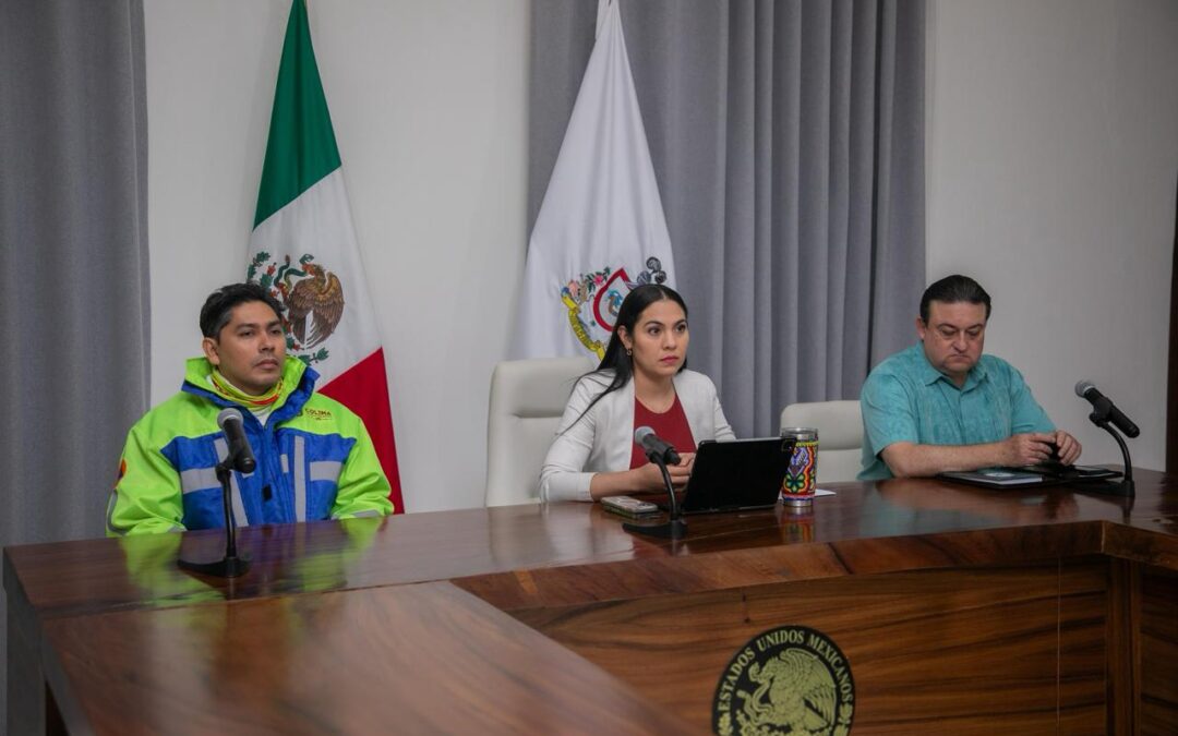Indira Vizcaíno, acompañada por el secretario general de Gobierno, Eloy García Alcaraz, y el director de la Unidad Estatal de Protección Civil, Erick González Sánchez, informó que -gracias a la prevención-, al momento no hay afectaciones considerables en carreteras; lo que se ha registrado ha sido menor, con árboles y postes caídos. Sin embargo, seguramente seguirá lloviendo en el transcurso del día; luego de que este viernes alrededor de las 7:30 de la mañana comenzaron las primeras lluvias muy ligeras en los tres municipios costeros: Manzanillo, Tecomán y Armería.